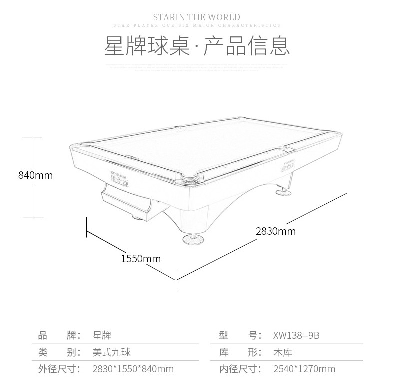 星牌 XW107-10S 小型英式斯諾克臺球桌
