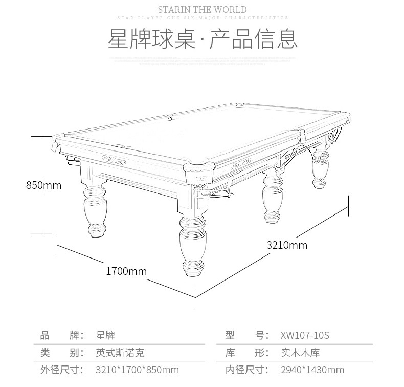 - 星牌 XW107-12S 英式斯諾克臺球桌