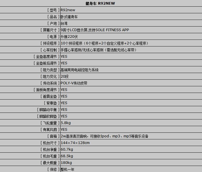 美國SOLE 速爾R92NEW臥式健身車
