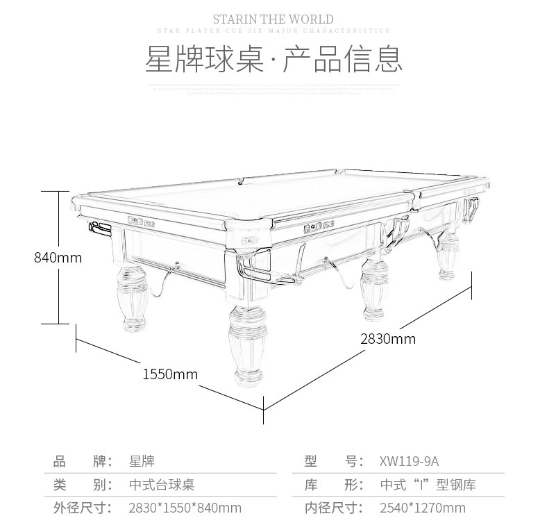 - 星牌 XW107-12S 英式斯諾克臺球桌